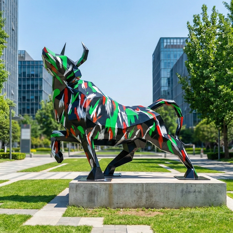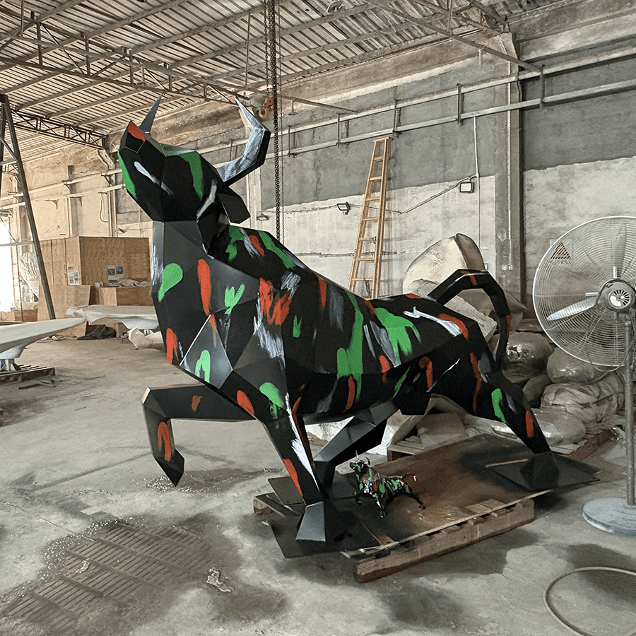 This bull sculpture symbolizes power, resilience, growth, and ambition, making it especially suitable for financial districts, technology parks, innovation hubs, and landmark commercial developments.