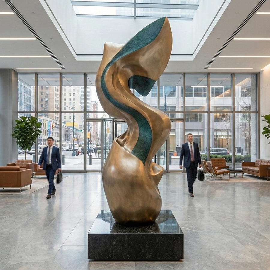 From a manufacturing standpoint, the sculpture is engineered with an internal steel structure to ensure long-term stability and safety. Each curve is precisely formed and hand-finished by skilled artisans, achieving seamless welding, refined transitions, and museum-quality surface treatment.