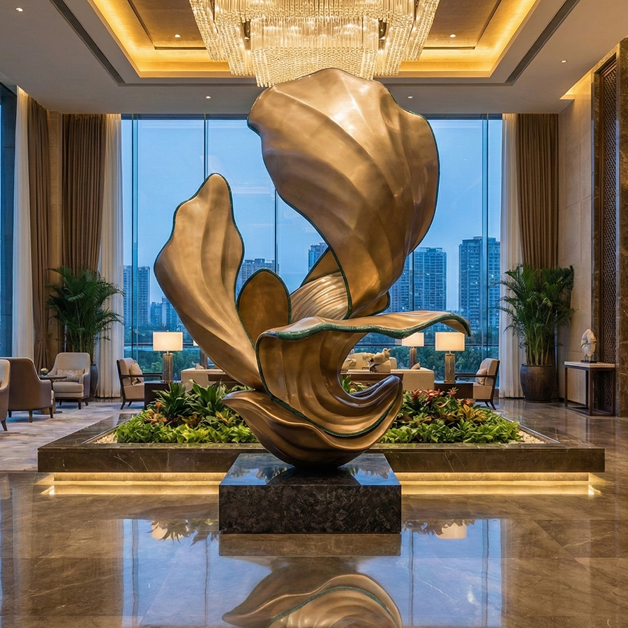 Designed for hotel lobbies, corporate headquarters, commercial atriums, and upscale residential spaces, this sculpture combines artistic expression with structural precision. The smooth transitions between surfaces reflect ambient light beautifully, while the sculptural silhouette adds depth and spatial dialogue to contemporary interiors.