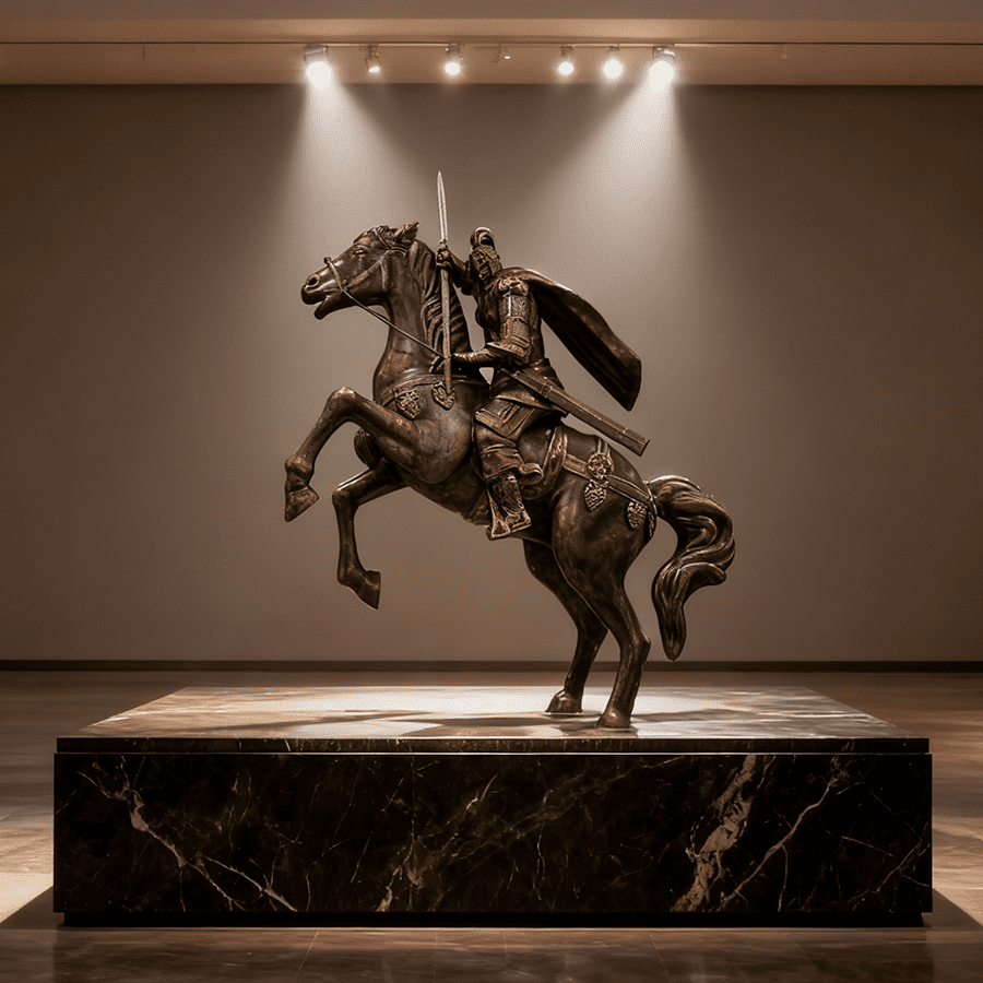 Perfect for museum displays, hotel lobbies, luxury residences, or corporate foyers, the sculpture serves as a commanding centerpiece that tells a story of heroism and cultural heritage.
