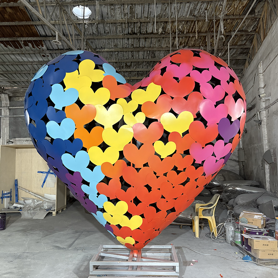 Colorful Heart-Shaped Stainless Steel Sculpture for Public Art & Landscape Spaces