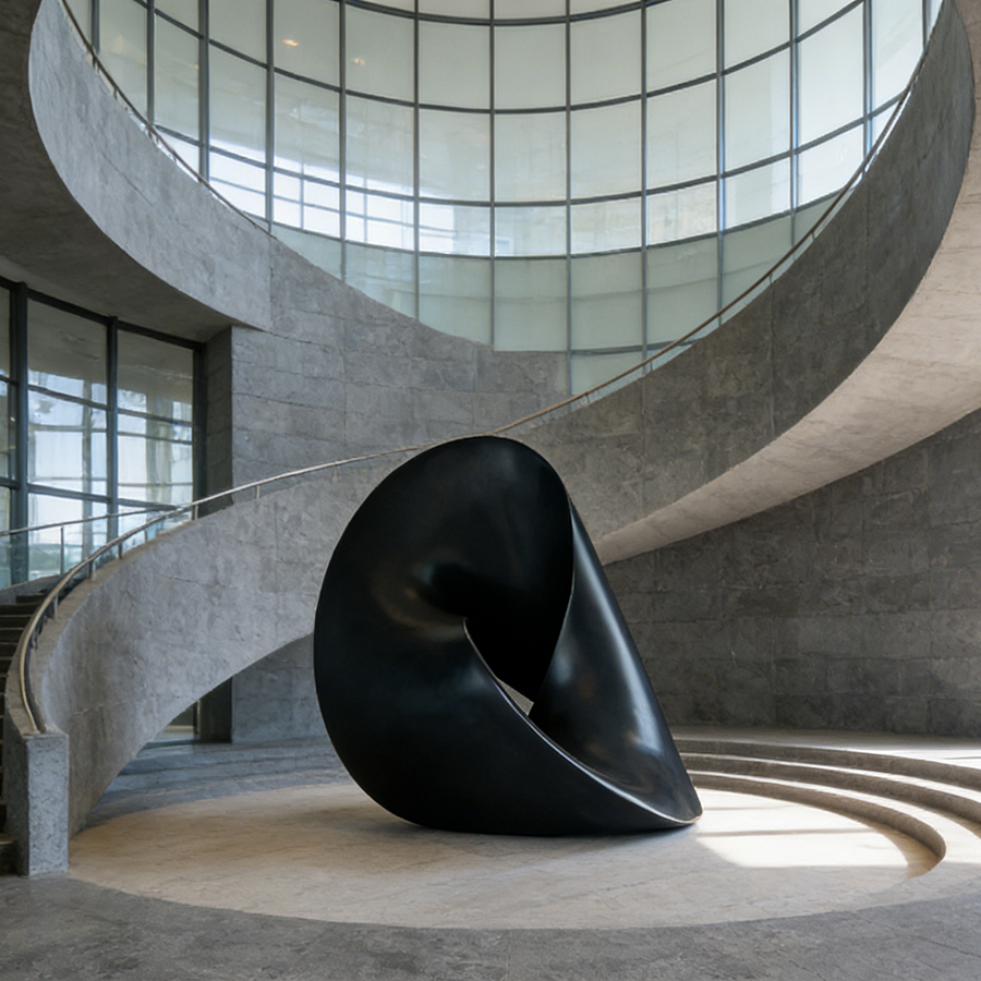Structural Elegance: Despite its heavy, solid appearance, the sculpture possesses a graceful lightness. The seamless transitions between its interior and exterior surfaces showcase advanced metal-forming and welding techniques, ensuring no visible seams or joints.