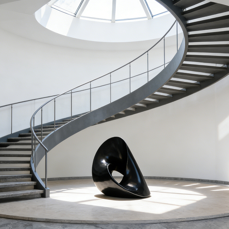 Fluid Geometric Form: This sculpture features a continuous, looping silhouette inspired by the concept of infinity and organic growth. Its sweeping curves and hollow center create a sense of movement and “spatial breathing,” making it a dynamic focal point from every angle.