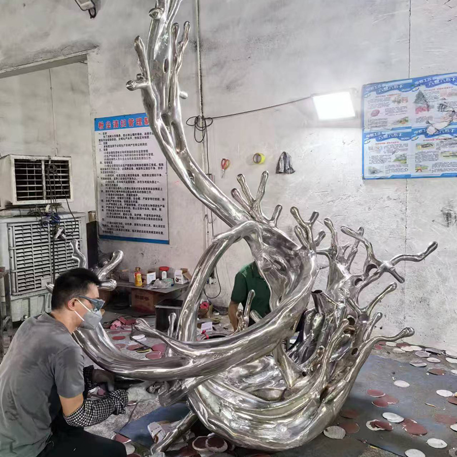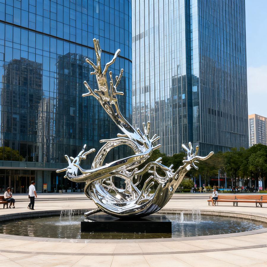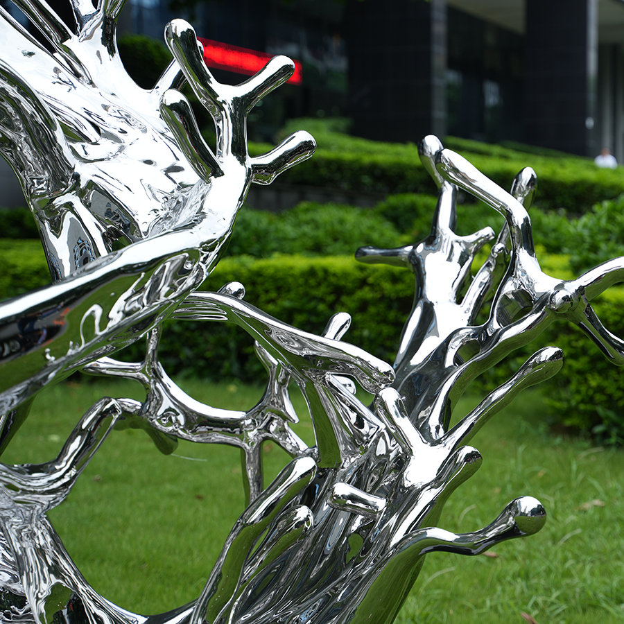 This stainless steel wave sculpture is a contemporary outdoor artwork inspired by the dynamic motion of ocean waves and flowing energy. Crafted from high-grade stainless steel, the sculpture features fluid, branch-like curves that rise and twist organically, creating a striking visual landmark for waterfronts, plazas, parks, and architectural landscapes.