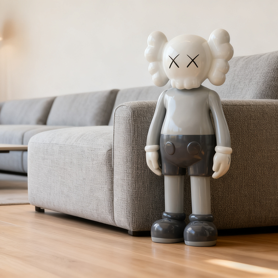 Whether placed beside a sofa, in a lobby, or as part of an art display, this sculpture adds a playful yet refined atmosphere, blending modern design with a touch of nostalgia.
