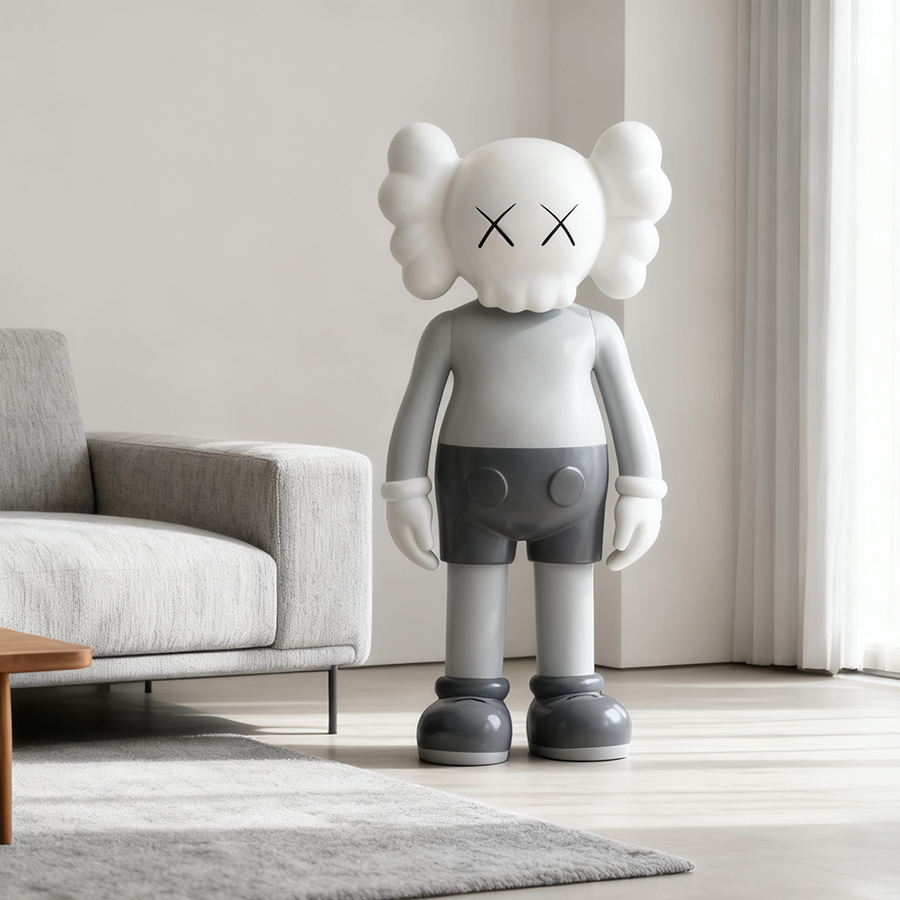 This fiberglass cartoon sculpture is a striking piece of contemporary pop art designed to bring creativity and personality into modern interiors. Crafted from premium fiberglass, it features a minimalist color palette of grey, white, and black tones — emphasizing clean lines and bold contrast.