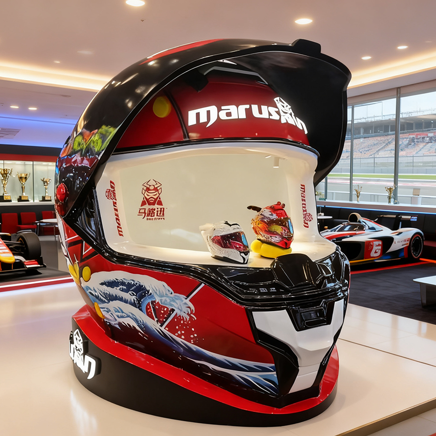Fiberglass Helmet Booth | 3M Racing Helmet Sculpture for Exhibition & Interior Display