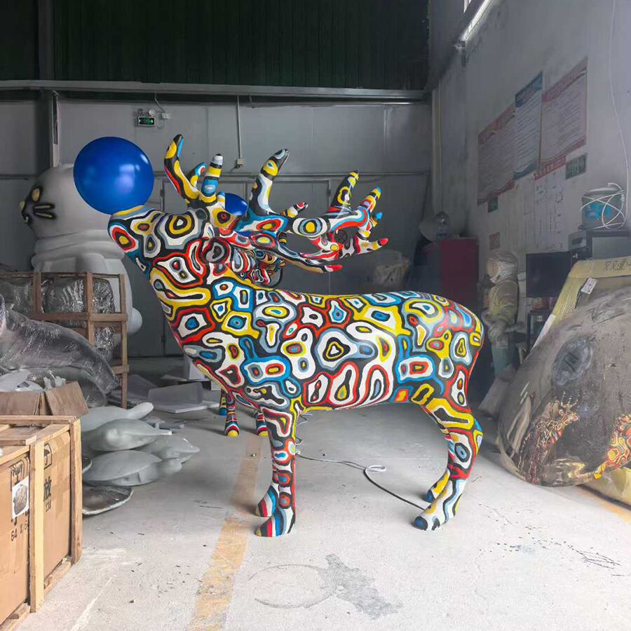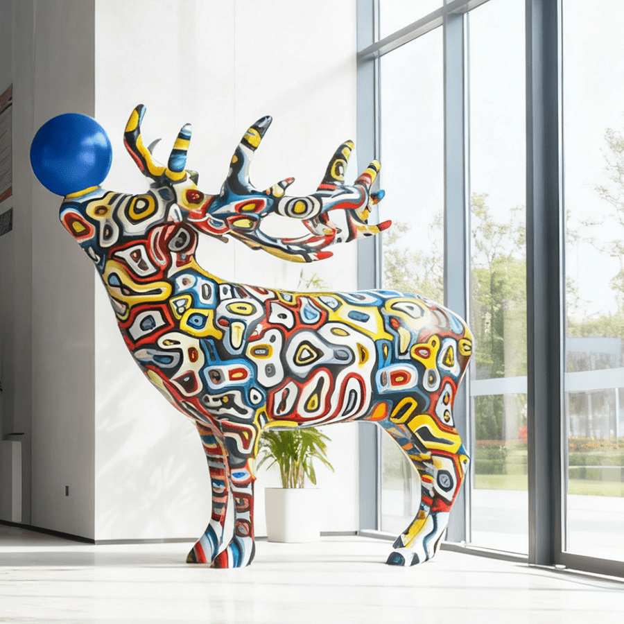 Fiberglass Painted Deer Sculpture | Colorful Modern Animal Art for Interior Decoration