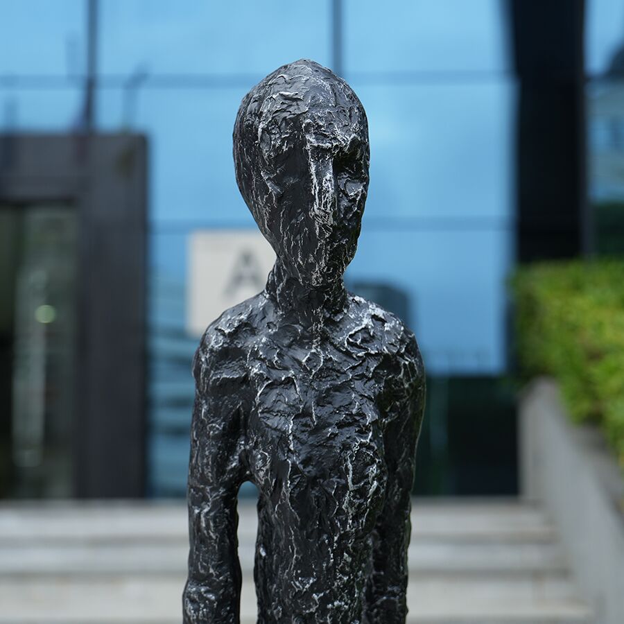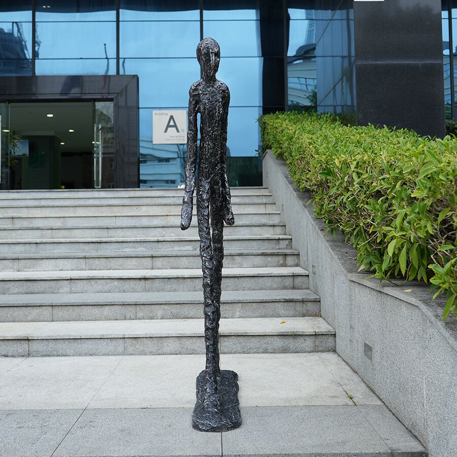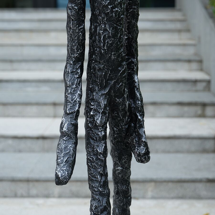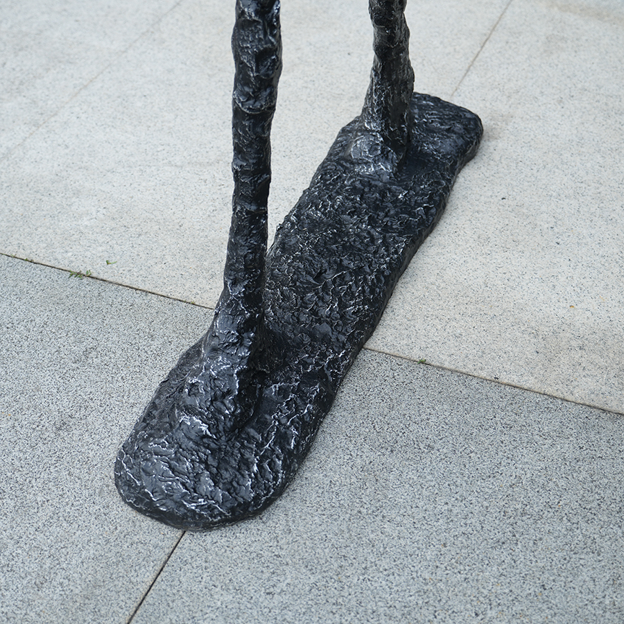 Crafted from high-quality fiberglass, the sculpture features a dark textured finish that enhances its raw artistic character. The abstract and slender design draws inspiration from the timeless aesthetics of modern European sculpture, making it a perfect centerpiece for interior décor in hotels, galleries, residences, or offices.