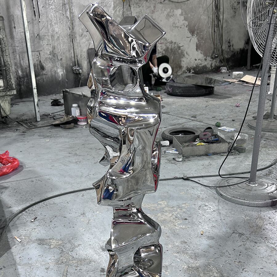 This gold stainless-steel sculpture features an elegant abstract form with a mirror-polished finish, perfect for luxury interiors. Ideal for bedrooms, hotels, and modern living spaces, it adds warmth, reflection, and artistic sophistication.