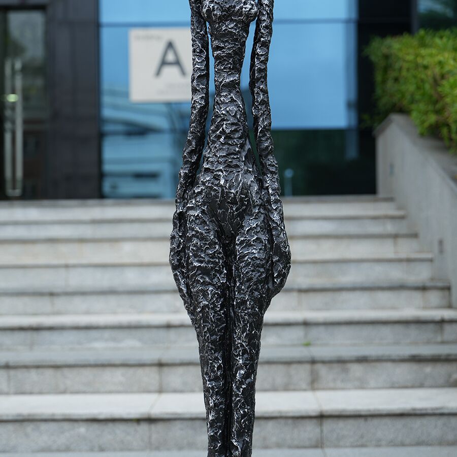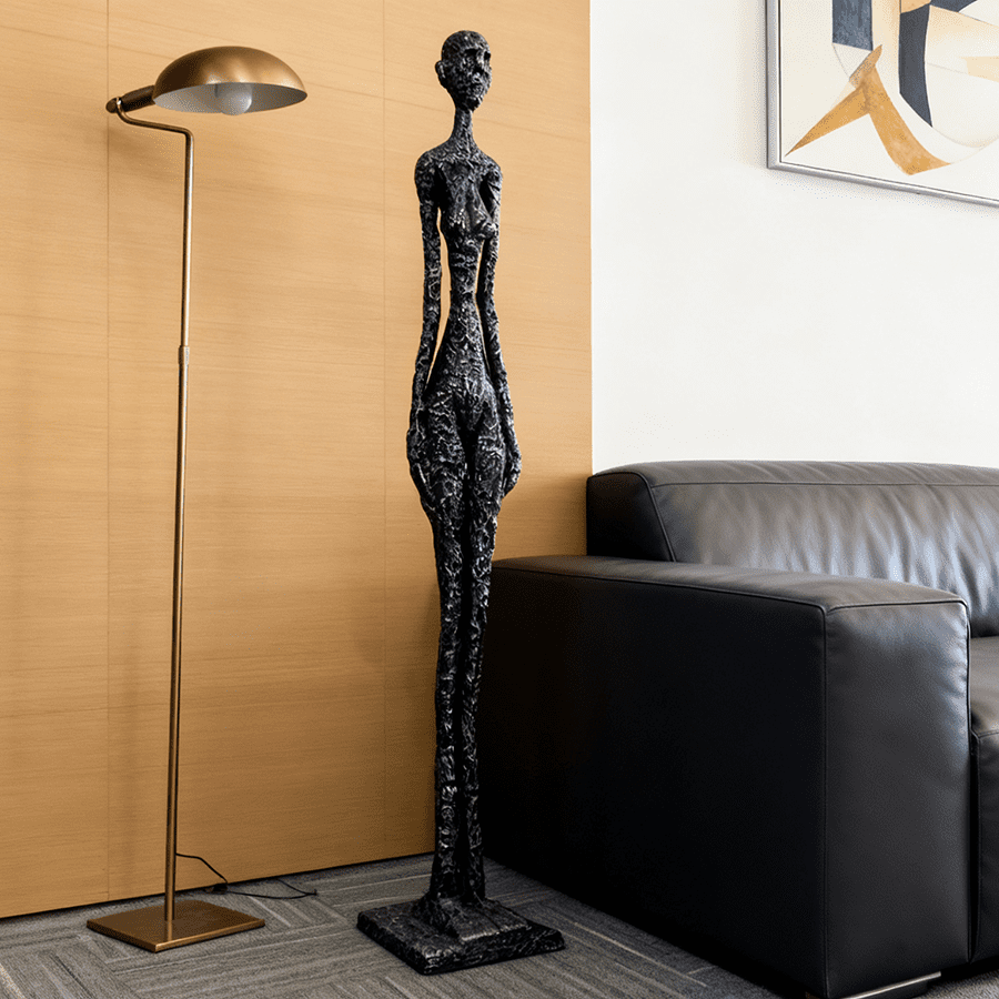 The dark textured finish adds a touch of raw artistic charm, perfectly balancing modern minimalism with emotional expression. Standing tall and slim, this sculpture creates a commanding visual presence while complementing various design styles such as modern, industrial, and Nordic interiors.
