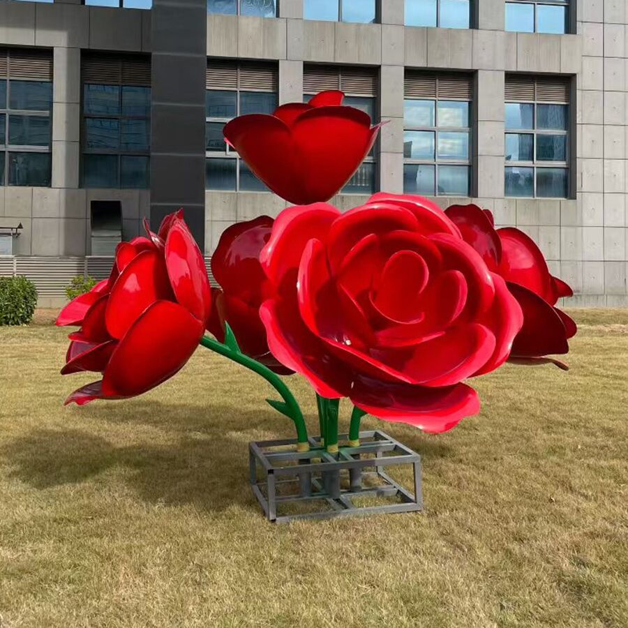 Large Red Rose Stainless Steel Sculpture for Outdoor Public Art & Commercial Landscapes