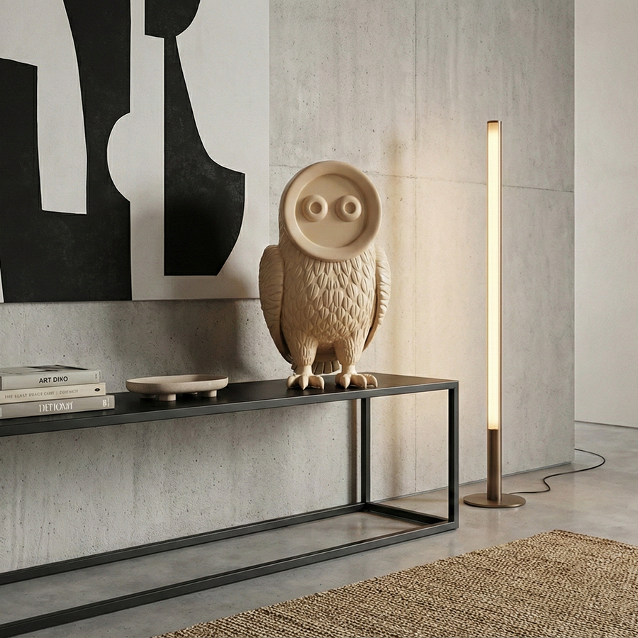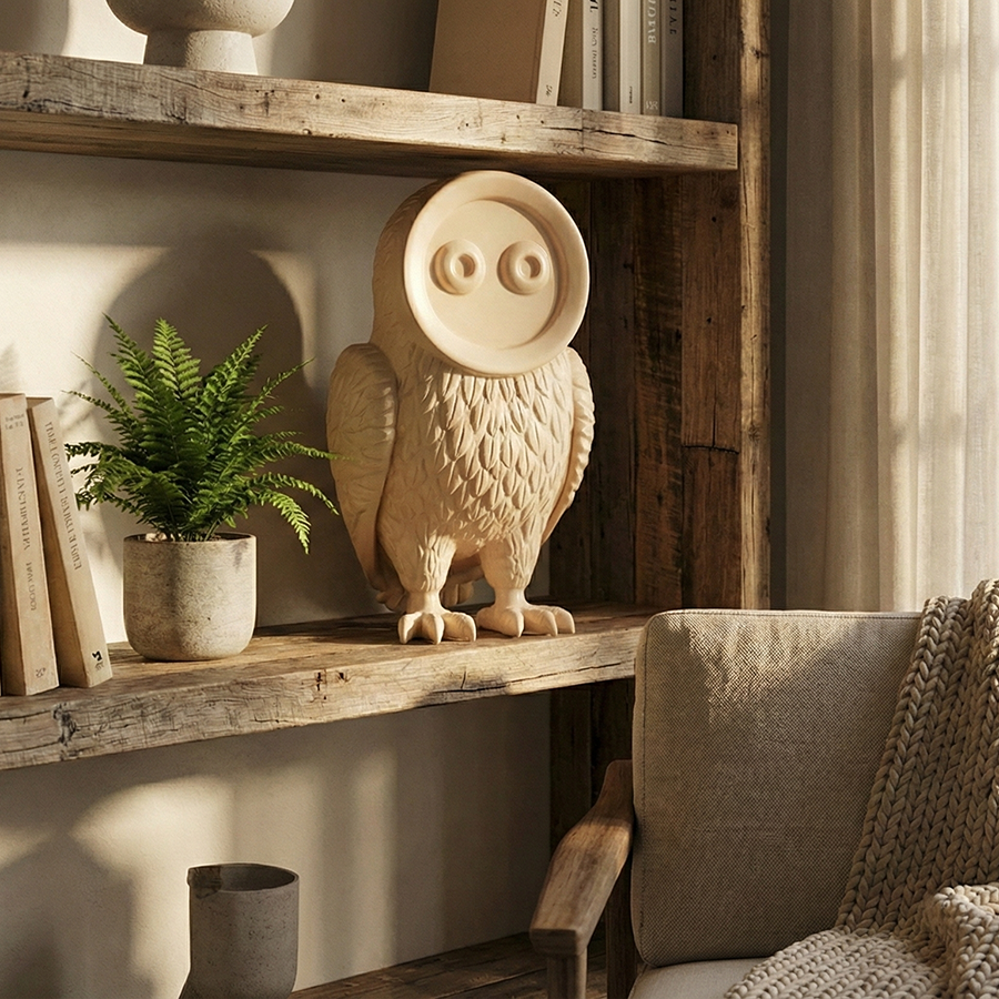Minimalist Fiberglass Owl Sculpture for Interior Decor | Modern Decorative Animal Art