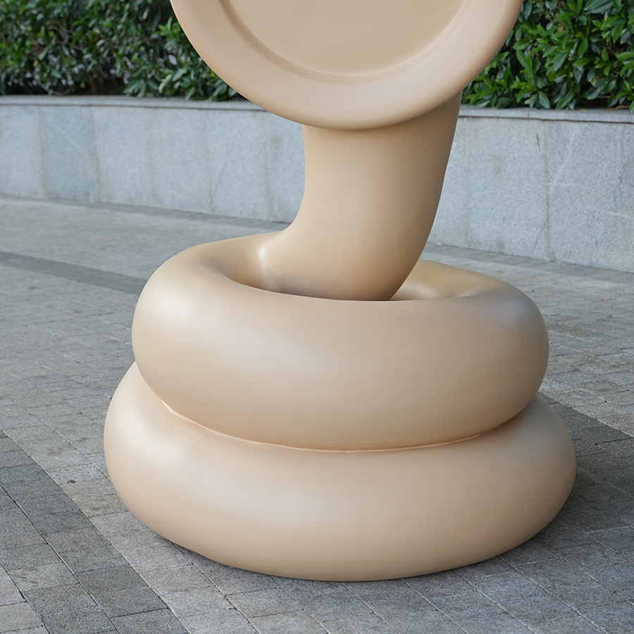 Add a touch of whimsy to your corner with our ‘Serene Serpent’ fiberglass sculpture. Finished in a trendy matte latte beige, this minimalist pop-art cobra is the perfect modern accent for living rooms and studios.