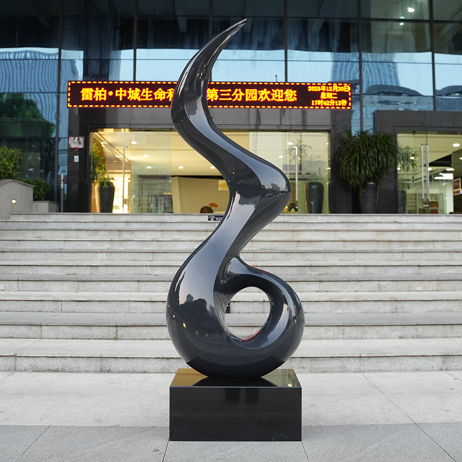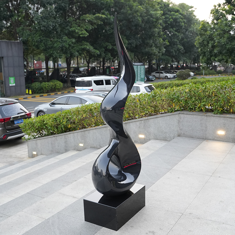 Crafted from high-quality stainless steel, the surface is finished in a deep black, high-gloss polish that subtly reflects ambient light, enhancing depth and visual interest. The smooth, continuous lines create a dynamic presence while maintaining a refined, minimalist aesthetic—making it ideal for modern interiors.