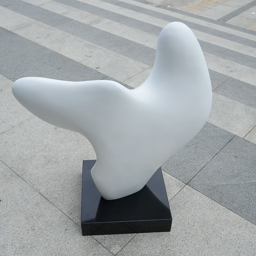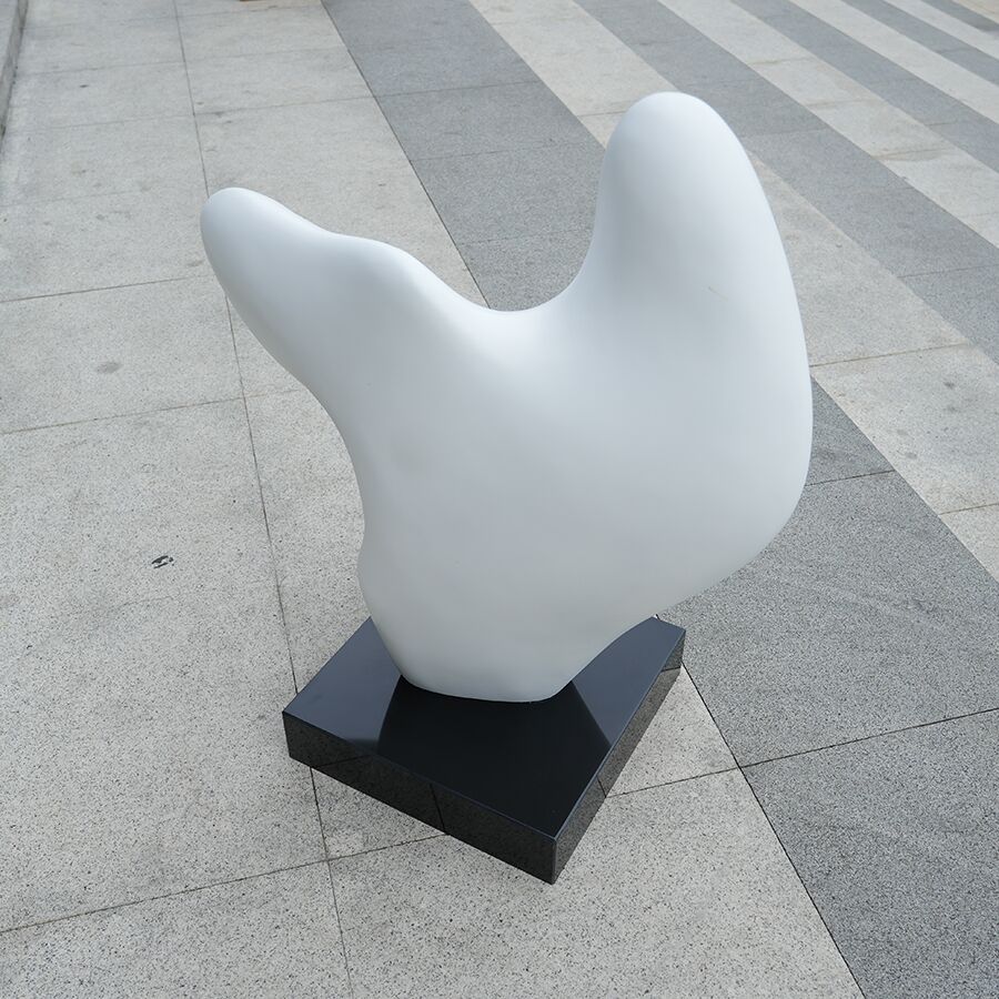 This fiberglass sculpture for interior decoration is a striking piece of modern art that combines smooth, flowing curves with a bold minimalist form. The sculpture’s abstract design, finished in a crisp matte white, creates a calming yet impactful presence, making it an ideal centerpiece for luxury homes, hotels, galleries, or office lobbies.