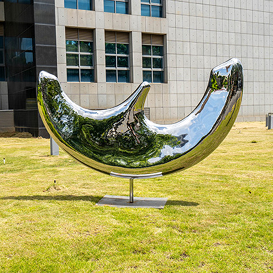 Enhance your landscape with this moon-shaped stainless steel sculpture featuring a smooth crescent design and mirror-polished finish. Ideal for parks, plazas, gardens, and commercial spaces. Crafted from durable 304/316 stainless steel by a professional sculpture manufacturer.