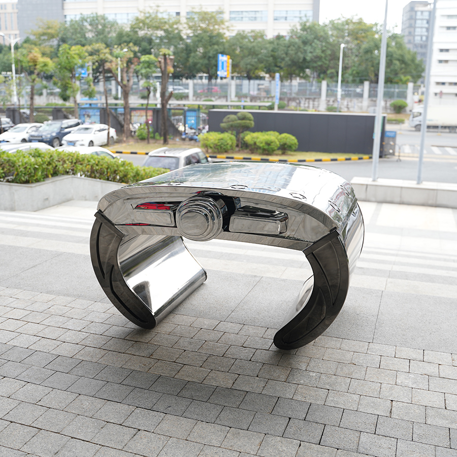 Its low, sculptural profile and bold metallic presence make it ideal for luxury living rooms, executive lounges, hotel suites, private clubs, and high-end residential interiors. This piece is not mass-produced furniture—it is a customizable functional sculpture, built to order with precision craftsmanship.