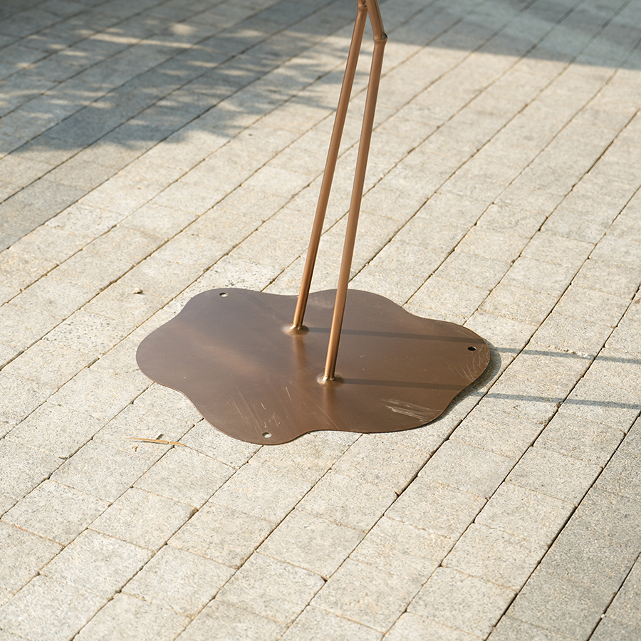 Integrated Base Plates: Each crane is supported by a discreet, organic-shaped base plate that can be easily anchored to concrete, stone, or turf.