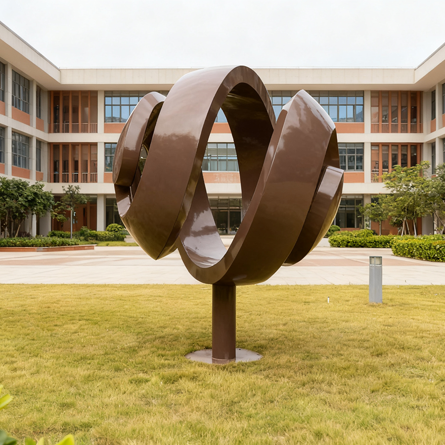 Designed for parks, hotel gardens, residential landscapes, and commercial plazas, this modern stainless steel artwork enhances open spaces with a bold architectural presence. The sculpture’s corrosion-resistant stainless steel construction ensures long-lasting durability in all weather conditions.