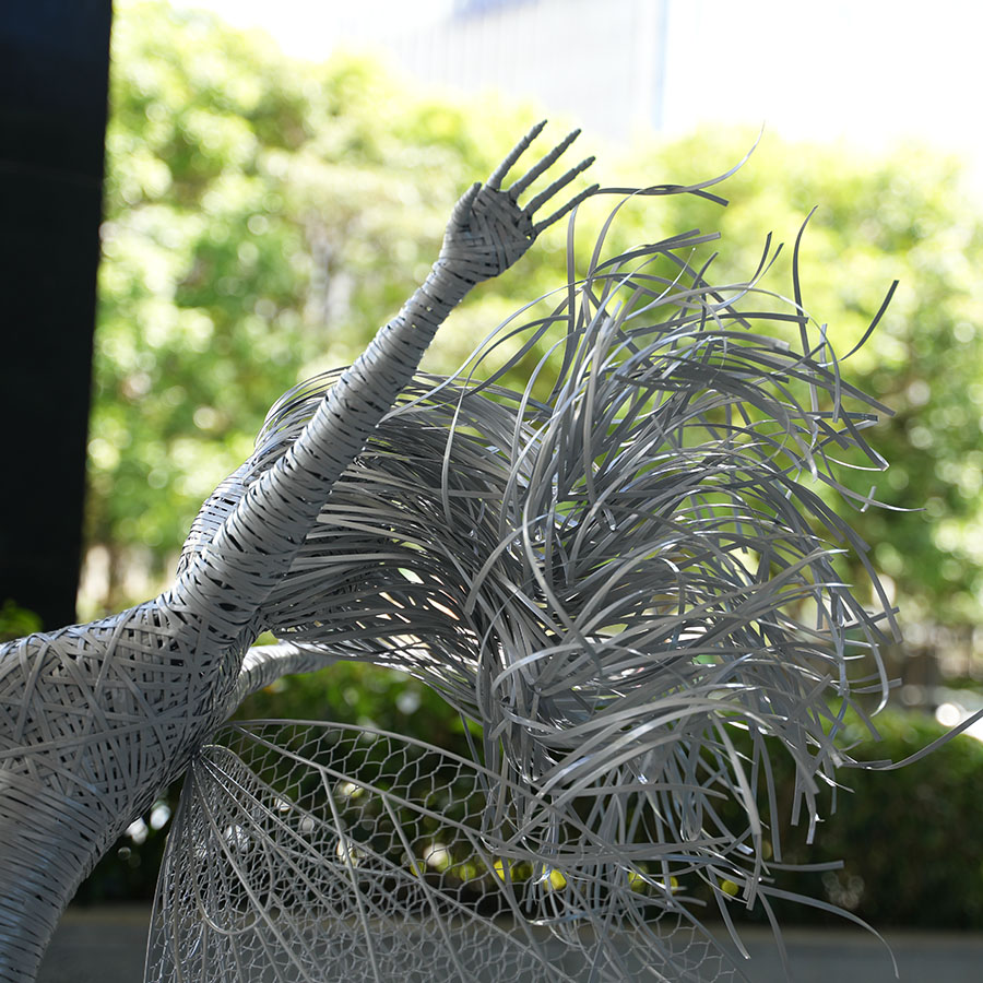 Expressive Elements: The “hair” is sculpted as wild, flowing tendrils of steel, suggesting a strong breeze and adding to the sense of motion. The wings are expan