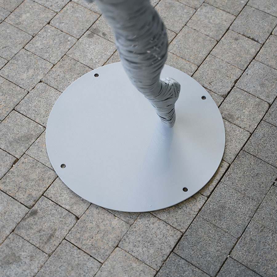 Mounting: Securely welded to a solid, circular stainless steel base plate for stability on concrete, stone, or grass.