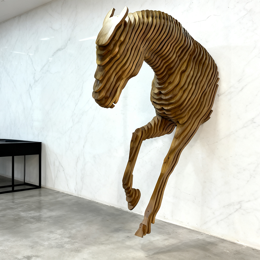 Explore this wooden horse wall sculpture — a 3D layered art piece crafted from natural wood. Ideal for modern interiors, hotels, or art galleries, this wall-mounted sculpture combines craftsmanship and motion to create an elegant and dynamic focal point.